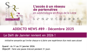 Actualités Accueil > Newsletter #89 Voir toute l'actu Newsletter #89 Publié le 16/12/2025 SRAE Addicto : Défi de Janvier 2026 ! Webinaire de la SF2A Les associations d’entraide aux usagers et à l’entourage sont à vos côtés Veille et autres ressources